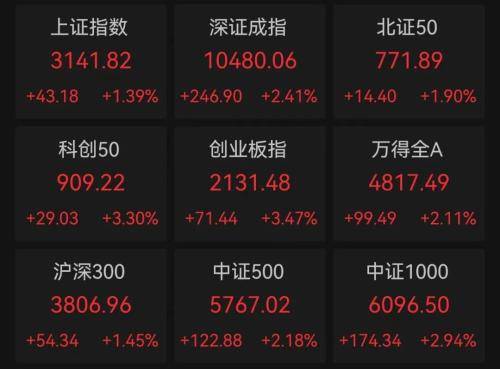 截至午间收盘,沪指涨1.39%,深成指涨2.41%,创业板指涨3.47%。两市超4700股上涨,近60只个股涨停,半日成交额6265亿元。