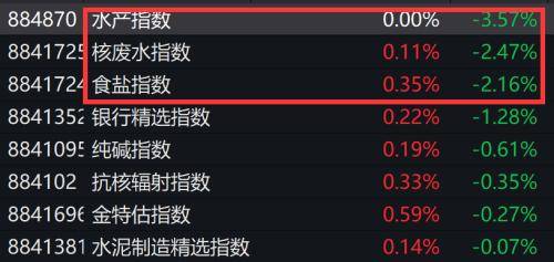 29日早盘,连续大涨数日的核污染概念集体下跌。WIND水产、食盐、核废水概念领跌。