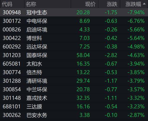 其中,正和生态盘中触及跌停,冠中生态、中电环保跌超6%、博世科、国泰环保、远达环保、嘉戎技术等跟跌。