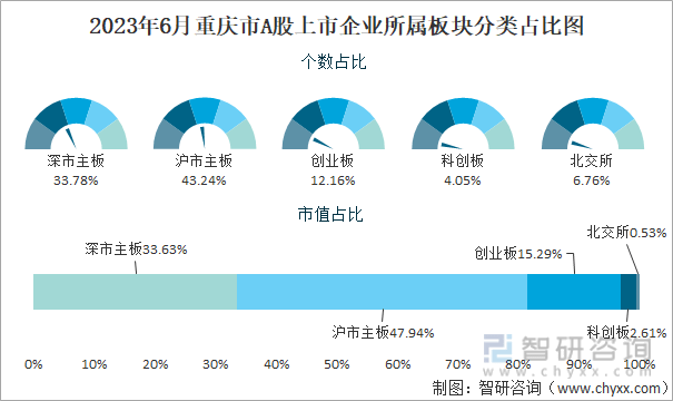 2023年6月重庆市A股上市企业所属板块分类占比图