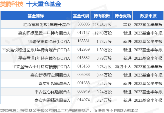 重仓美腾科技的前十大公募基金请见下表: