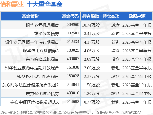 重仓怡和嘉业的前十大公募基金请见下表:
