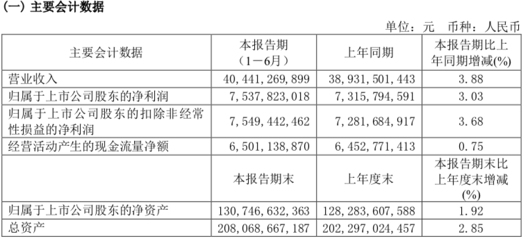8月28日晚间,西煤东运“大动脉”大秦铁路(601006.SH)发布2023年半年报,上半年实现营业收入约404.41亿元,同比增长3.88%;净利润约75.38亿元,同比增长3.03%;扣非净利润为75.49亿元;基本每股收益0.51元。