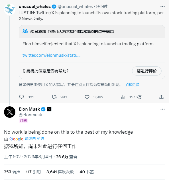 另外最近还有消息称,马斯克正寻求和金融数据巨头公司合作,将 X 打造成一个金融平台。