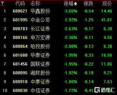 券商股多数下跌,华鑫股份跌超3%,长江证券、中金公司、申万宏源跌超2%,华泰证券、国联证券等纷纷走低。山西证券表现强势,盘中一度拉升涨停,截止收盘涨8.05%。