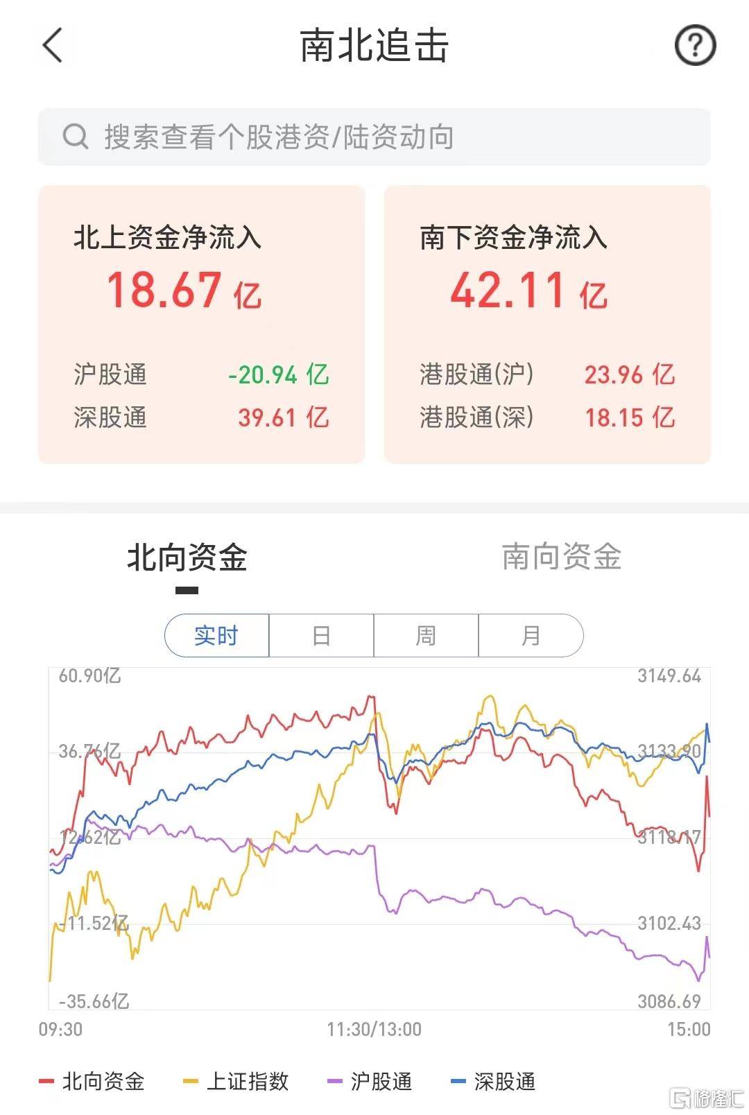 今日,北上资金净流入18.67亿元,其中沪股通净流出20.94亿元,深股通净流入39.61亿元。