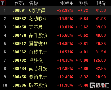 半导体板块表现强势,芯动联科20cm涨停,晶升股份涨超15%,慧智微-U、卓胜微涨超14%,南芯科技等跟涨。
