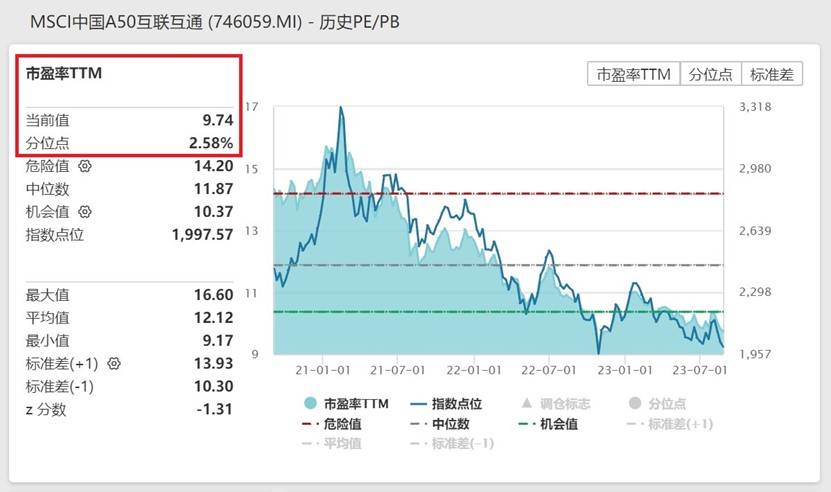 截至2023年8月28日,MSCI中国A50指数最新PE仅9.74倍,处于近三年2.58%的分位,低于近三年来97%以上的时间区间,估值性价比凸显!