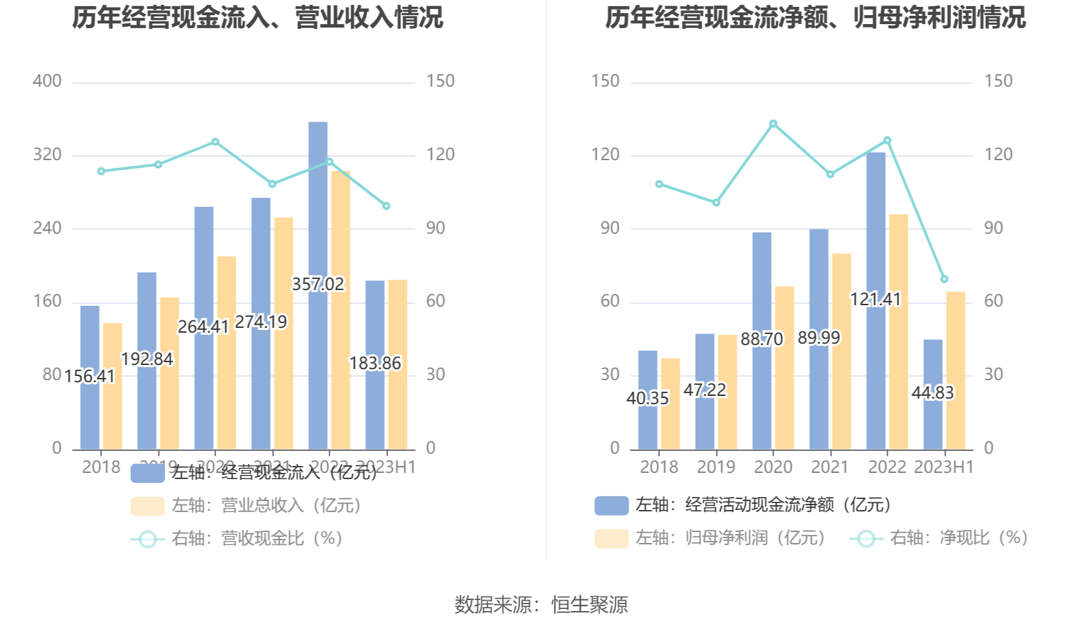 2023年上半年,公司营业收入现金比为99.52%,净现比为69.59%。