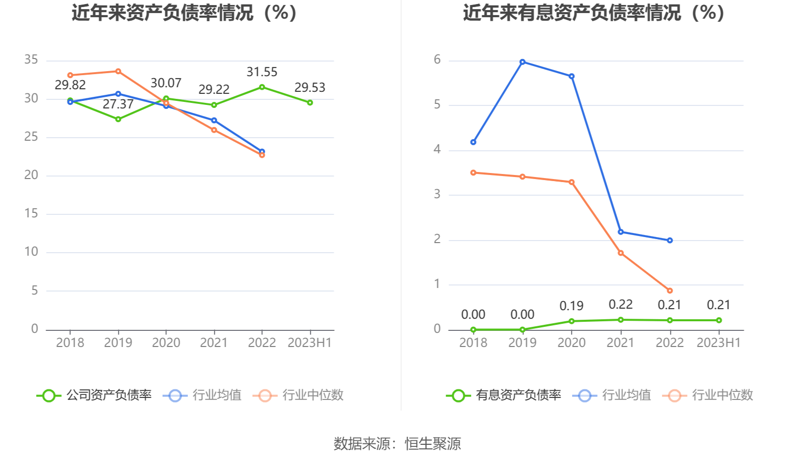 偿债能力方面,公司2023年二季度末资产负债率为29.53%,相比上年末减少2.02个百分点;有息资产负债率为0.21%,相比上年末持平。