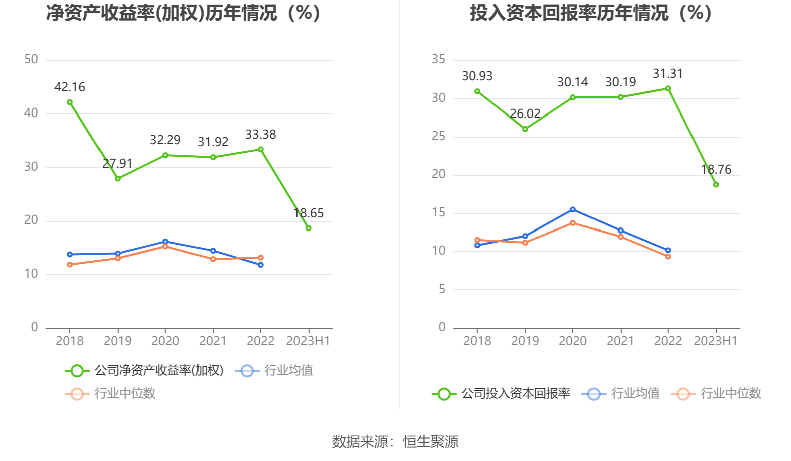 盈利能力方面, 2023年半年度公司加权平均净资产收益率为18.65%,同比下降0.02个百分点。公司2023年半年度投入资本回报率为18.76%,较上年同期下降0.05个百分点。