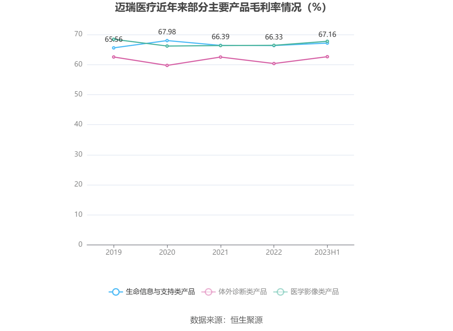 分产品看,生命信息与支持类产品、体外诊断类产品、医学影像类产品2023年上半年毛利率分别为67.16%、62.63%、67.76%。