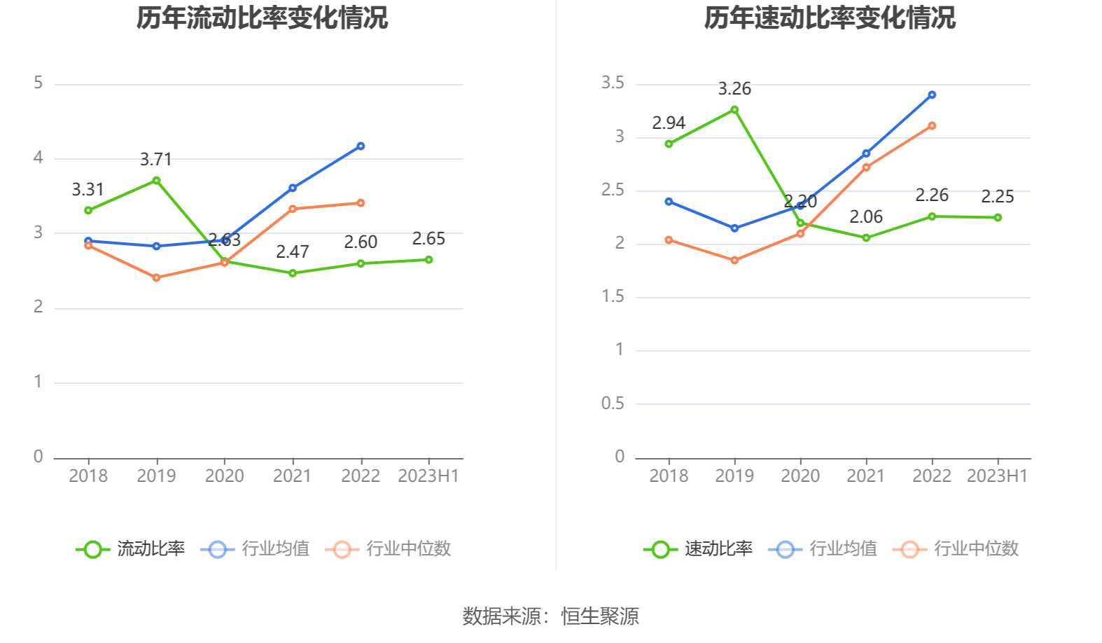 2023年上半年,公司流动比率为2.65,速动比率为2.25。