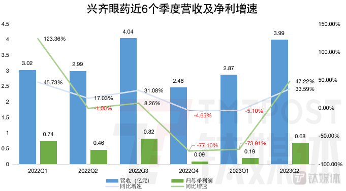 今年一季度,兴齐眼药交出了一份让市场大跌眼镜的季报,营收、净利分别同比下滑5.10%、73.91%。而此次公司财报发布,又火速扭转颓势,二季度营收、净利分别同比上涨33.59%、47.22%。