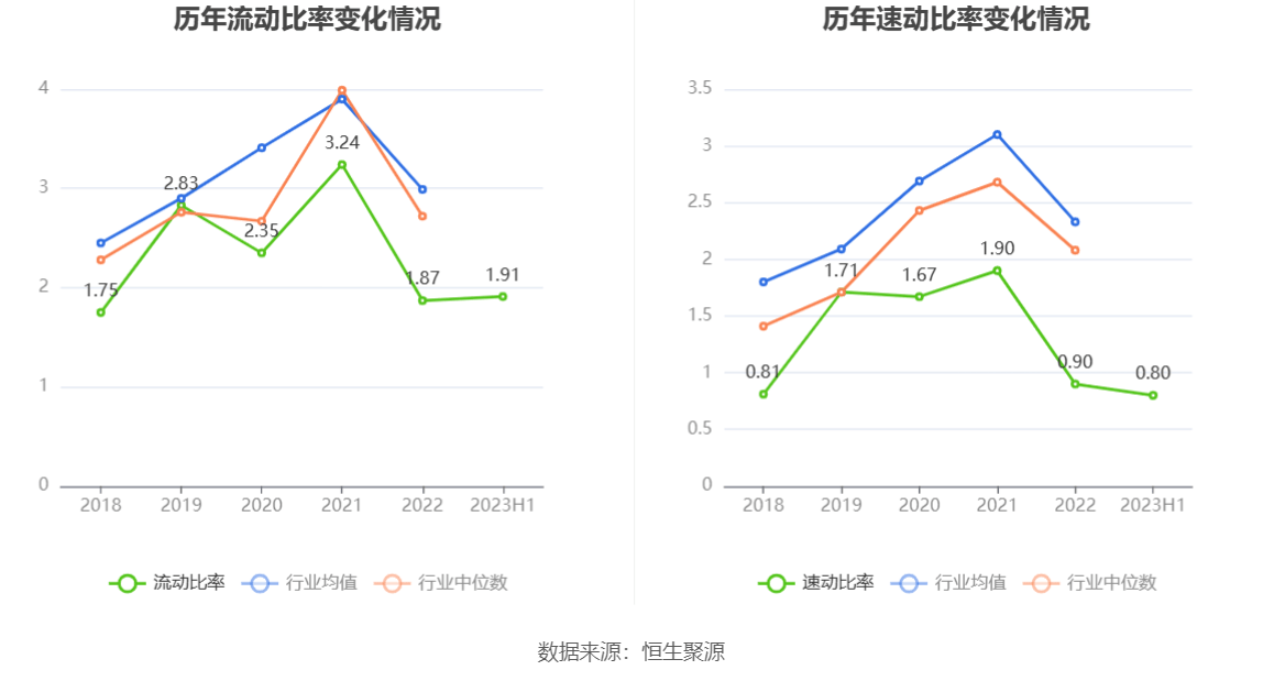 2023年上半年,公司流动比率为1.91,速动比率为0.80。