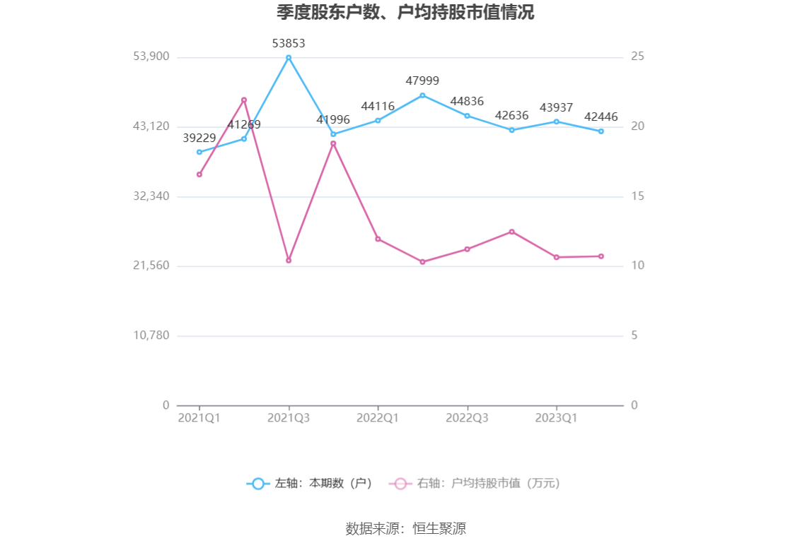 筹码集中度方面,截至2023年二季度末,公司股东总户数为4.24万户,较一季度末下降了1491户,降幅3.39%;户均持股市值由一季度末的10.65万元上升至10.72万元,增幅为0.66%。