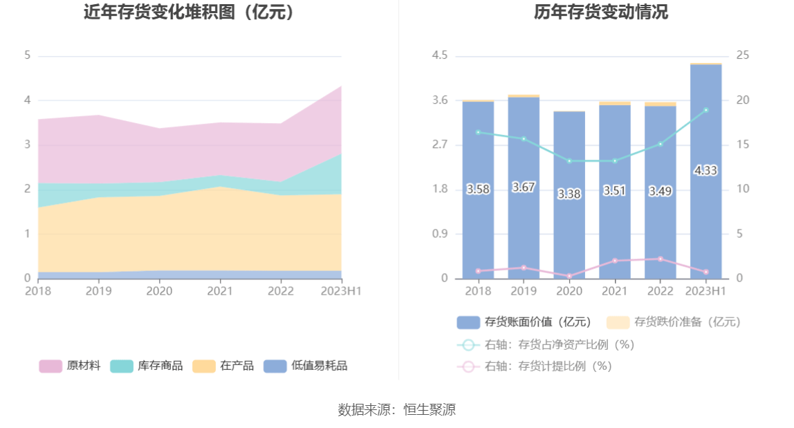 资产重大变化方面,截至2023年二季度末,公司存货余额较上年末增加24.23%,占公司总资产比重上升2.99个百分点;固定资产较上年末减少2.26%,占公司总资产比重下降1.38个百分点;货币资金余额较上年末减少9.26%,占公司总资产比重下降0.49个百分点;预付款项较上年末减少12.67%,占公司总资产比重下降0.41个百分点。