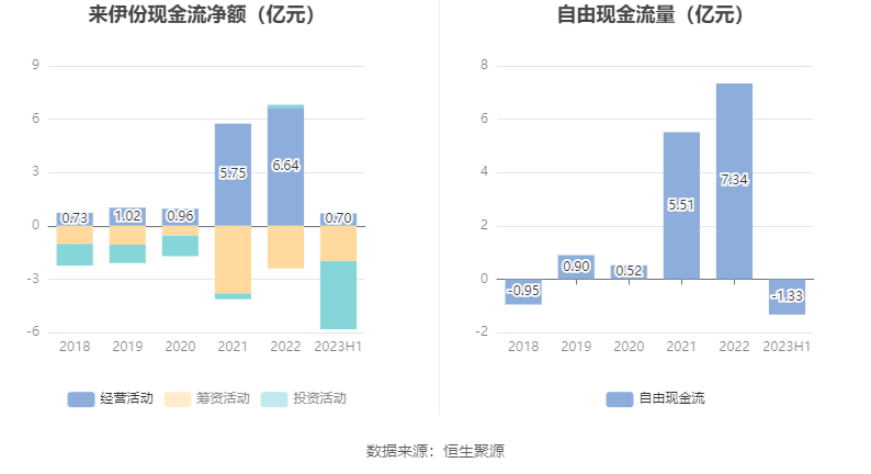 进一步统计发现,2023年上半年公司自由现金流为-1.33亿元,上年同期为2.05亿元。