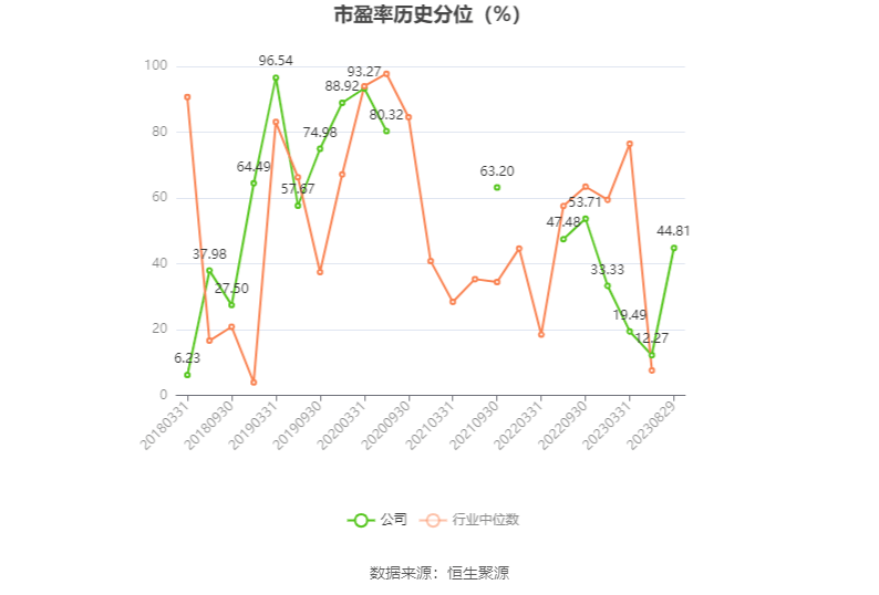 市盈率为负时,不显示当期分位数,会导致折线图中断。