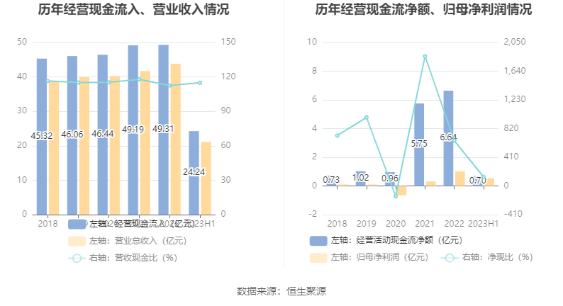 2023年上半年,公司营业收入现金比为114.90%,净现比为129.44%。
