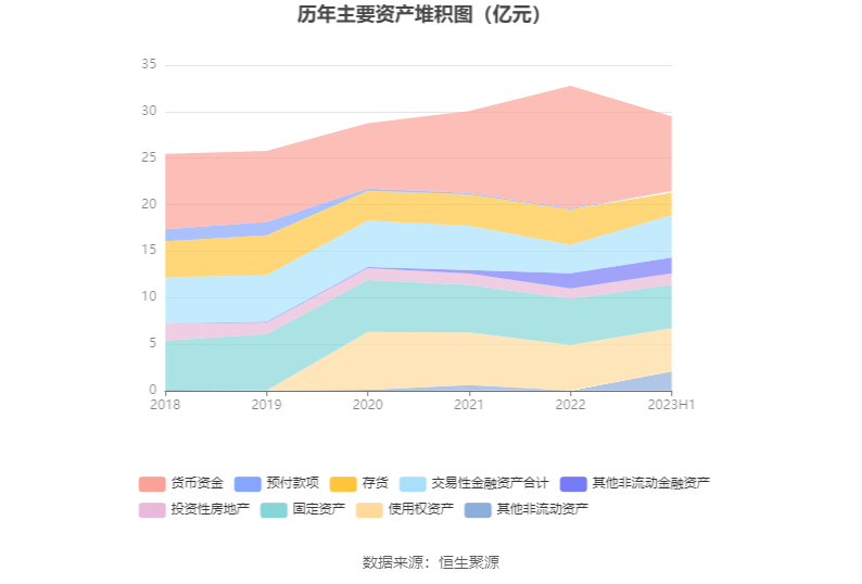 资产重大变化方面,截至2023年二季度末,公司货币资金余额较上年末减少39.11%,占公司总资产比重下降11.46个百分点;存货余额较上年末减少37.05%,占公司总资产比重下降3.06个百分点;固定资产较上年末减少6.03%,占公司总资产比重上升0.66个百分点;应收账款较上年末减少22.72%,占公司总资产比重下降0.29个百分点。