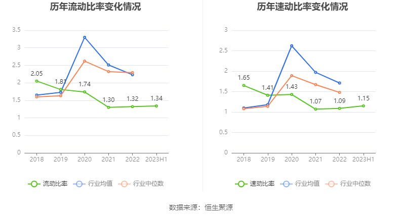 2023年上半年,公司流动比率为1.34,速动比率为1.15。