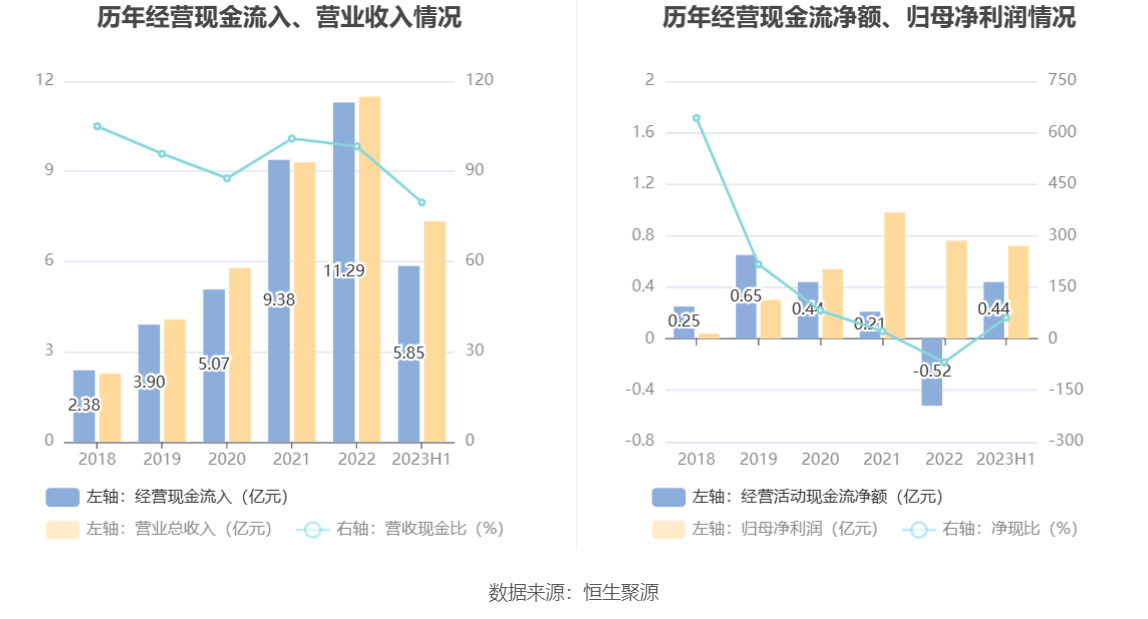 2023年上半年,公司营业收入现金比为79.67%,净现比为61.30%。