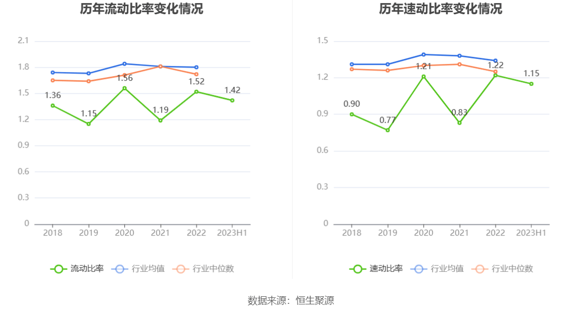 2023年上半年,公司流动比率为1.42,速动比率为1.15。
