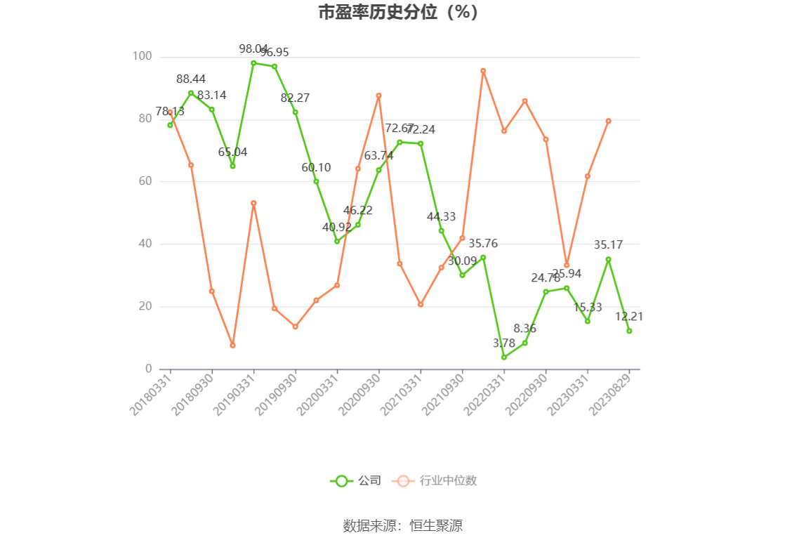 市盈率为负时,不显示当期分位数,会导致折线图中断。