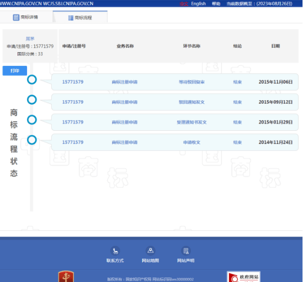 据国家知识产权局官网,蓝鲸财经记者检索商标“屌茅”得到两个注册结果,均未通过。2014年11月24日,贵州王某某在第33类酒商品上申请了“屌茅”商标,商标申请号15771579;2015年09月12日,第15771579号“屌茅”商标被驳回,后未做复审,商标局官网的查询状态显示无效。73337761的注册号由洪梓灿于2023年08月08日注册,目前正等待受理。