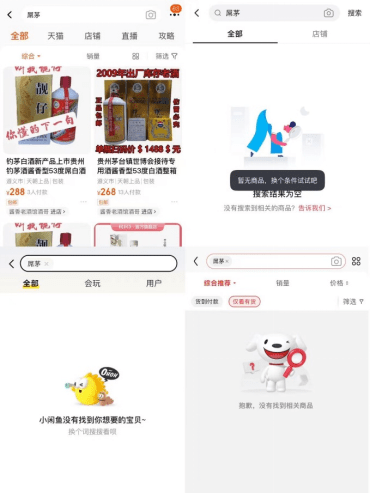 8月28日,蓝鲸财经记者发现,曾在各电商平台公开销售,包装和飞天茅台较为相似的“屌茅”白酒,现已全部下架,淘宝、抖音、京东、闲鱼多家电商均已搜索不到相关产品。