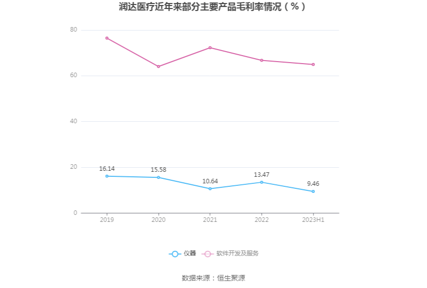 分产品看,仪器、软件开发及服务2023年上半年毛利率分别为9.46%、64.96%。
