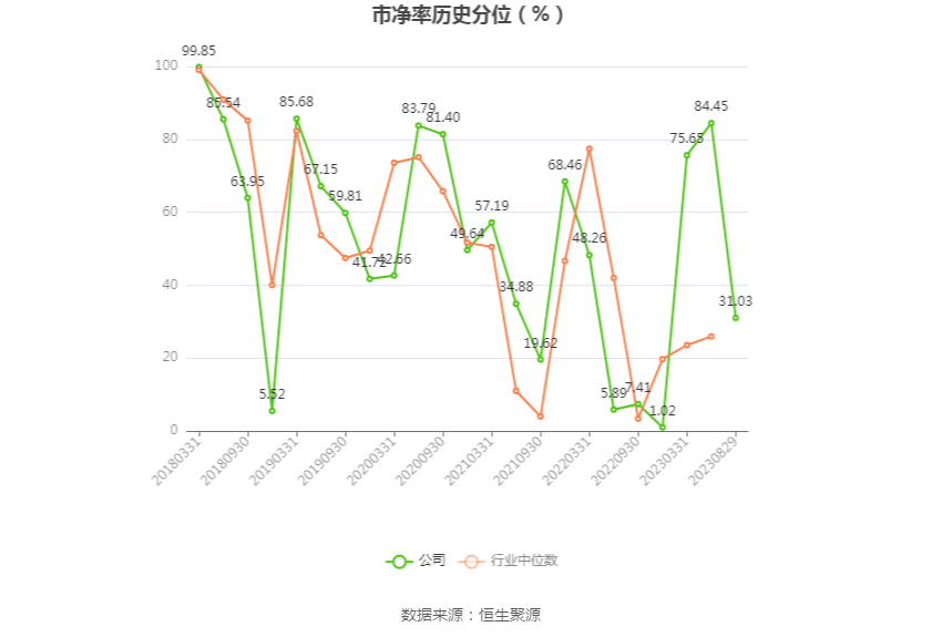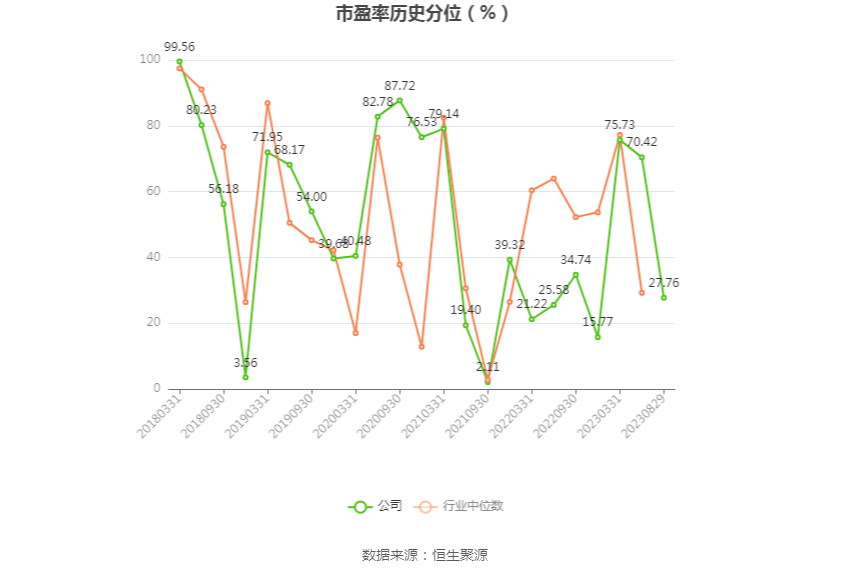 市盈率为负时,不显示当期分位数,会导致折线图中断。