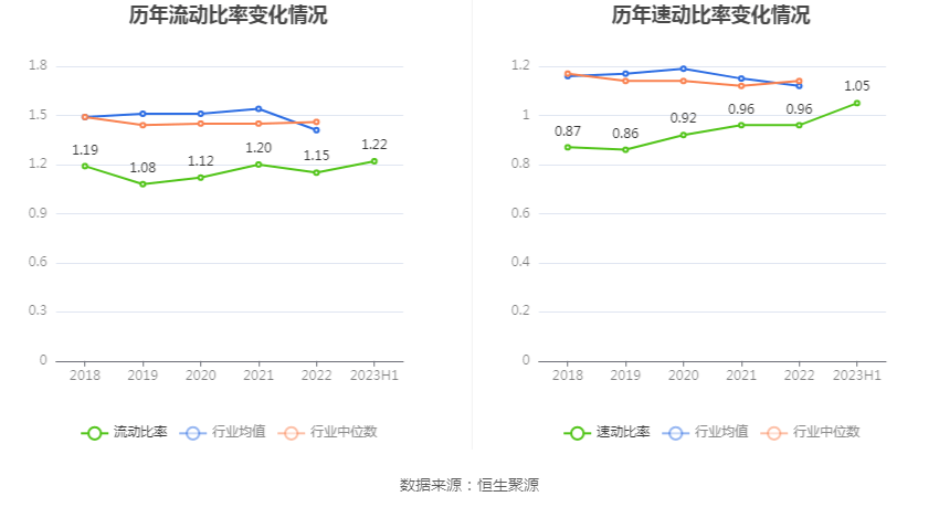 2023年上半年,公司流动比率为1.22,速动比率为1.05。