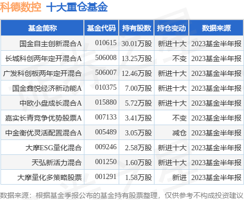 根据2023基金半年报公募基金重仓股数据,重仓该股的公募基金共19家,其中持有数量最多的公募基金为国金自主创新混合A。国金自主创新混合A目前规模为2.99亿元,最新净值0.597(8月28日),较上一交易日上涨1.2%,近一年下跌25.76%。该公募基金现任基金经理为陈恬。陈恬在任的基金产品包括:国金鑫悦经济新动能A,管理时间为2021年7月1日至今,期间收益率为-30.78%;国金新兴价值混合A,管理时间为2022年3月8日至今,期间收益率为-16.88%;