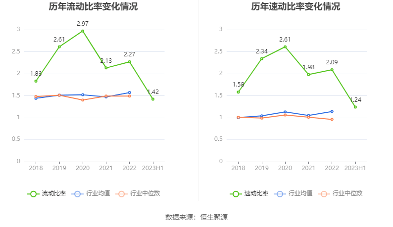 2023年上半年,公司流动比率为1.42,速动比率为1.24。