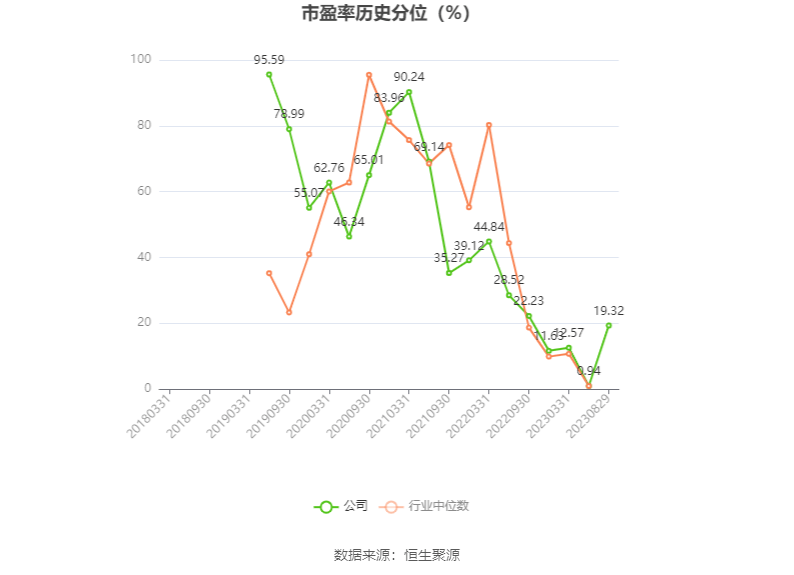 市盈率为负时,不显示当期分位数,会导致折线图中断。