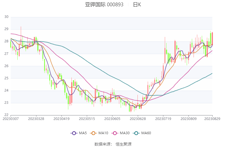 以8月29日收盘价计算,亚钾国际目前市盈率(TTM)约为16.2倍,市净率(LF)约为2.5倍,市销率(TTM)约为7.17倍。
