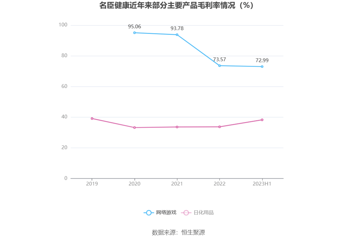 分产品看,网络游戏、日化用品2023年上半年毛利率分别为72.99%、38.25%。
