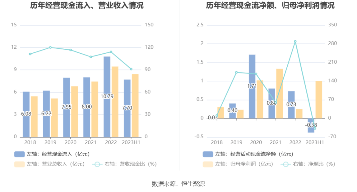 2023年上半年,公司营业收入现金比为91.13%,净现比为-37.72%。