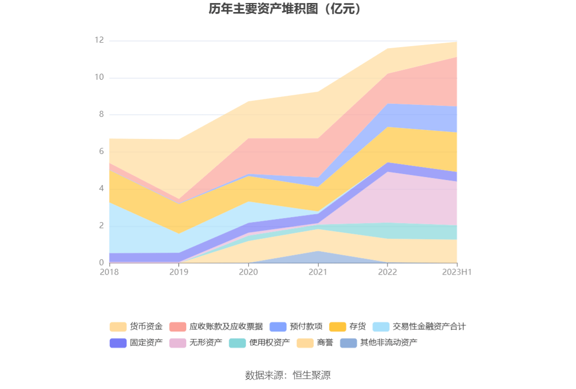 资产重大变化方面,截至2023年二季度末,公司应收账款较上年末增加65.64%,占公司总资产比重上升7.49个百分点;货币资金余额较上年末减少40.14%,占公司总资产比重下降4.71个百分点;无形资产较上年末减少14.11%,占公司总资产比重下降4.02个百分点;存货余额较上年末增加11.19%,占公司总资产比重上升0.90个百分点。