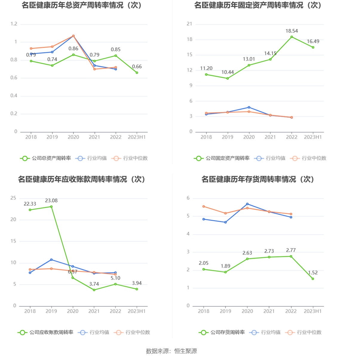 营运能力方面,2023年上半年,公司总资产周转率为0.66次,上年同期为0.36次(2022年上半年行业平均值为0.34次,公司位居同行业7/14);固定资产周转率为16.49次,上年同期为6.68次(2022年上半年行业平均值为1.40次,公司位居同行业2/14);公司应收账款周转率、存货周转率分别为3.94次、1.52次。