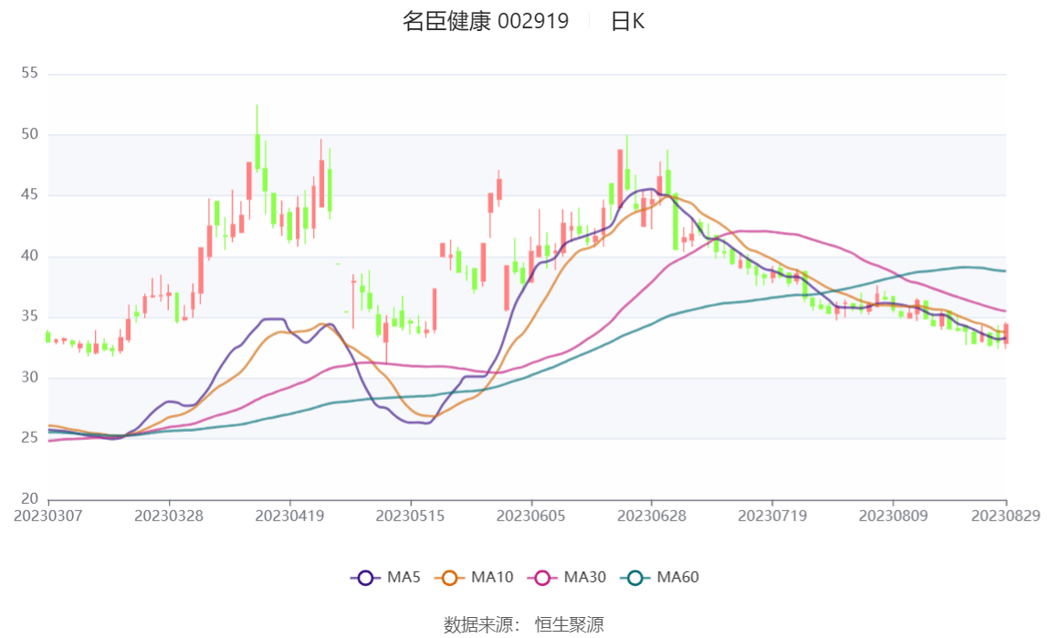 以8月29日收盘价计算,名臣健康目前市盈率(TTM)约为78.15倍,市净率(LF)约为9.11倍,市销率(TTM)约为5.29倍。
