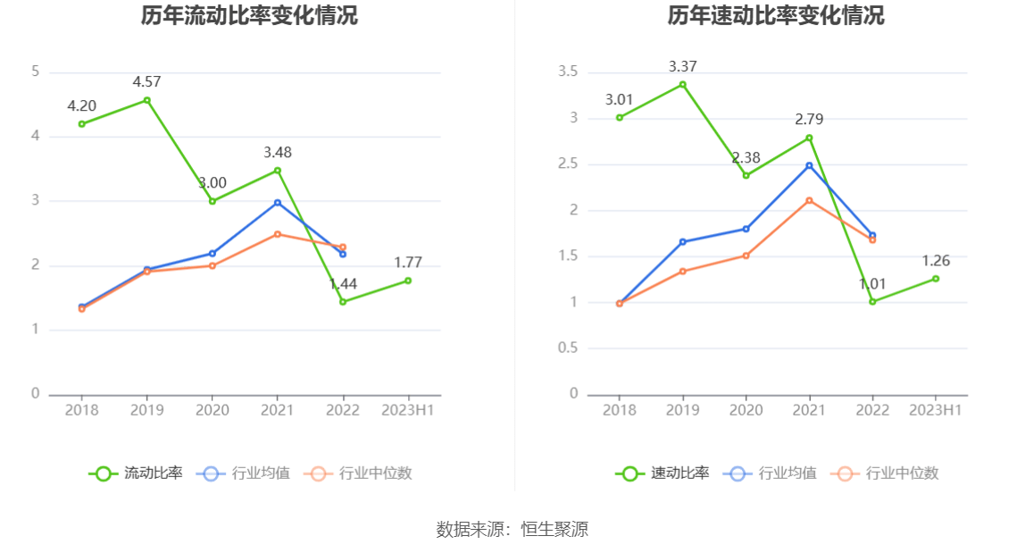 2023年上半年,公司流动比率为1.77,速动比率为1.26。