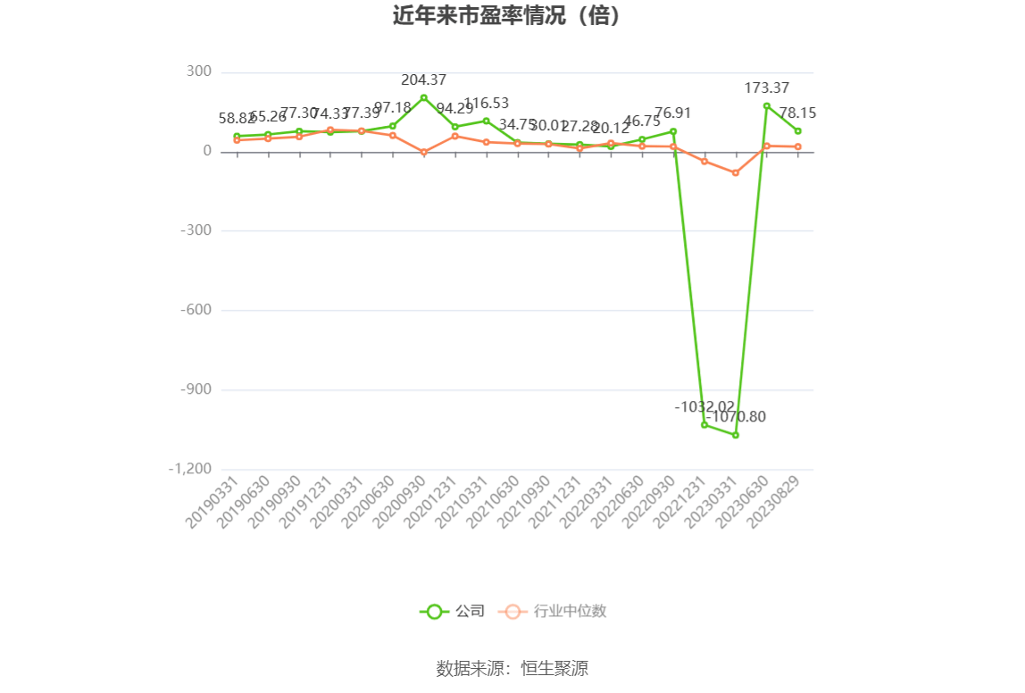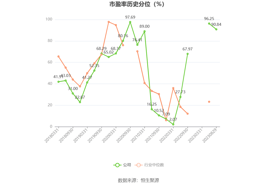 市盈率为负时,不显示当期分位数,会导致折线图中断。
