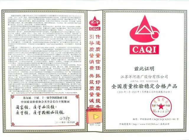 今年3月,在中国质量检验协会举办的2023年“3.15”“产品和服务质量诚信承诺”主题活动中,洋河股份荣获“全国产品和服务质量诚信示范企业”、“全国质量检验稳定合格产品”、“全国白酒行业质量领先品牌”、“全国白酒行业质量领先企业”四重权威认证。这凸显出业界对洋河坚持以质量为先的充分肯定。