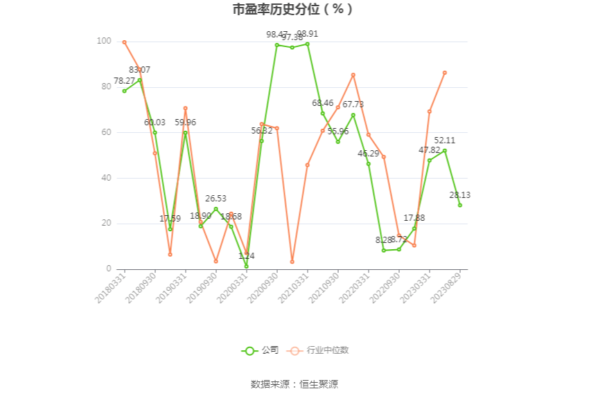 市盈率为负时,不显示当期分位数,会导致折线图中断。