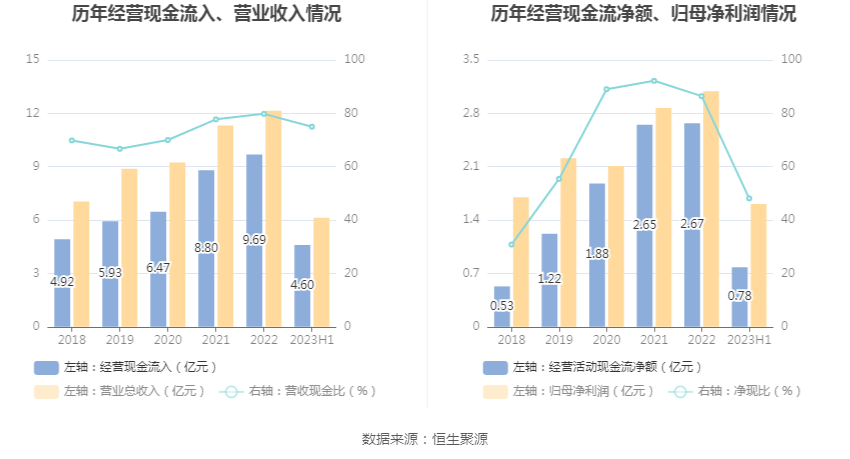 2023年上半年,公司营业收入现金比为75.00%,净现比为48.12%。
