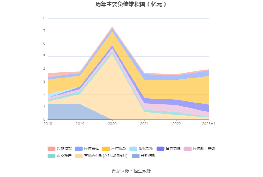 负债重大变化方面,截至2023年二季度末,公司应付账款较上年末增加45.16%,占公司总资产比重上升2.19个百分点;合同负债较上年末增加41.38%,占公司总资产比重上升0.53个百分点;其他流动负债较上年末增加61.08%,占公司总资产比重上升0.08个百分点;短期借款较上年末减少4.07%,占公司总资产比重下降0.03个百分点。