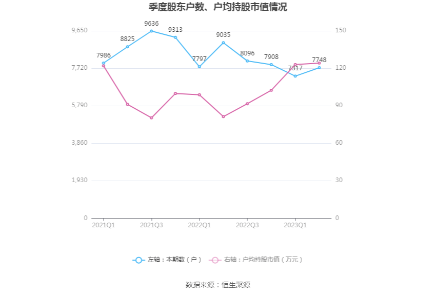 筹码集中度方面,截至2023年二季度末,公司股东总户数为7748户,较一季度末增长了431户,增幅5.89%;户均持股市值由一季度末的122.96万元上升至124.18万元,增幅为0.99%。